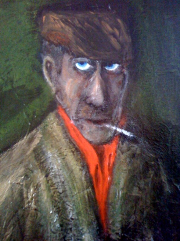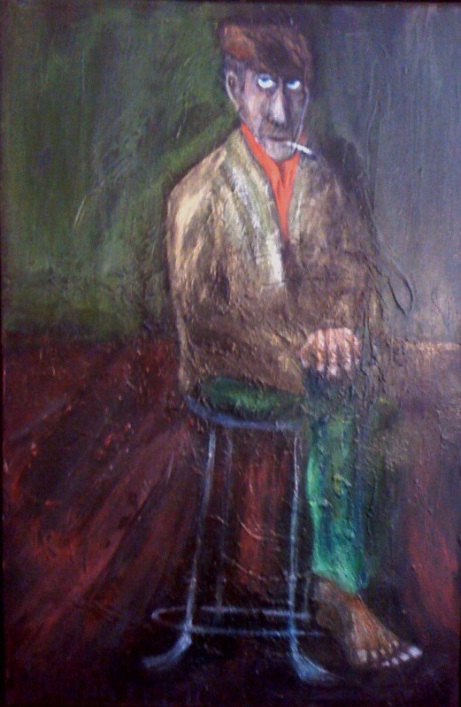 Ce tableau a été réalisé par destruction et reconstruction. La figure précédente a été annihilée par du noir de mars. Sur ce fond noir, la reconstruction a débuté par la structure d’un homme assis sur un banc, inspirée d’un autoportrait. Rapidement, son caractère a émergé: grave, indépendant, sans chaleur, mélancolique et frivole. Il est apparenté au dandysme que Baudelaire décrit, à la différence qu’en 2011 dans la société montréalaise, l’argent n’est pas «indispensable aux gens qui se font un culte de leurs passions».