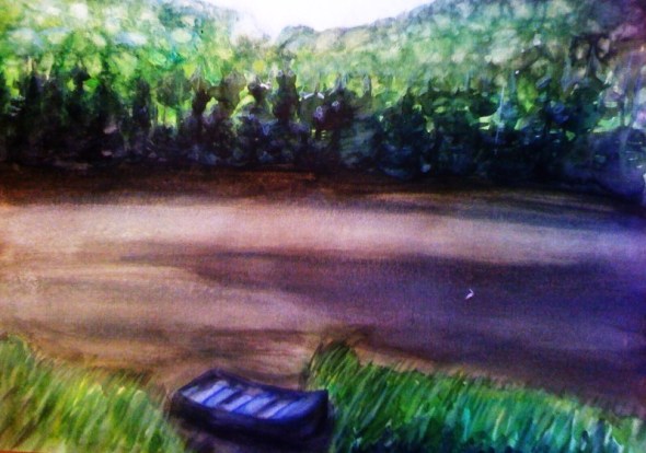 Years passed and I adopted L…’s place in the Laurentides as my nature land. It’s there, in the summer of 2003, that I started painting. I painted the lake, and the mountain on the opposite side of the chalet’s, litterally hundred of times, almost always with watercolour. It’s like a mantra by which I penetrate my relationship to the painter I want to be, to others and to nature.
