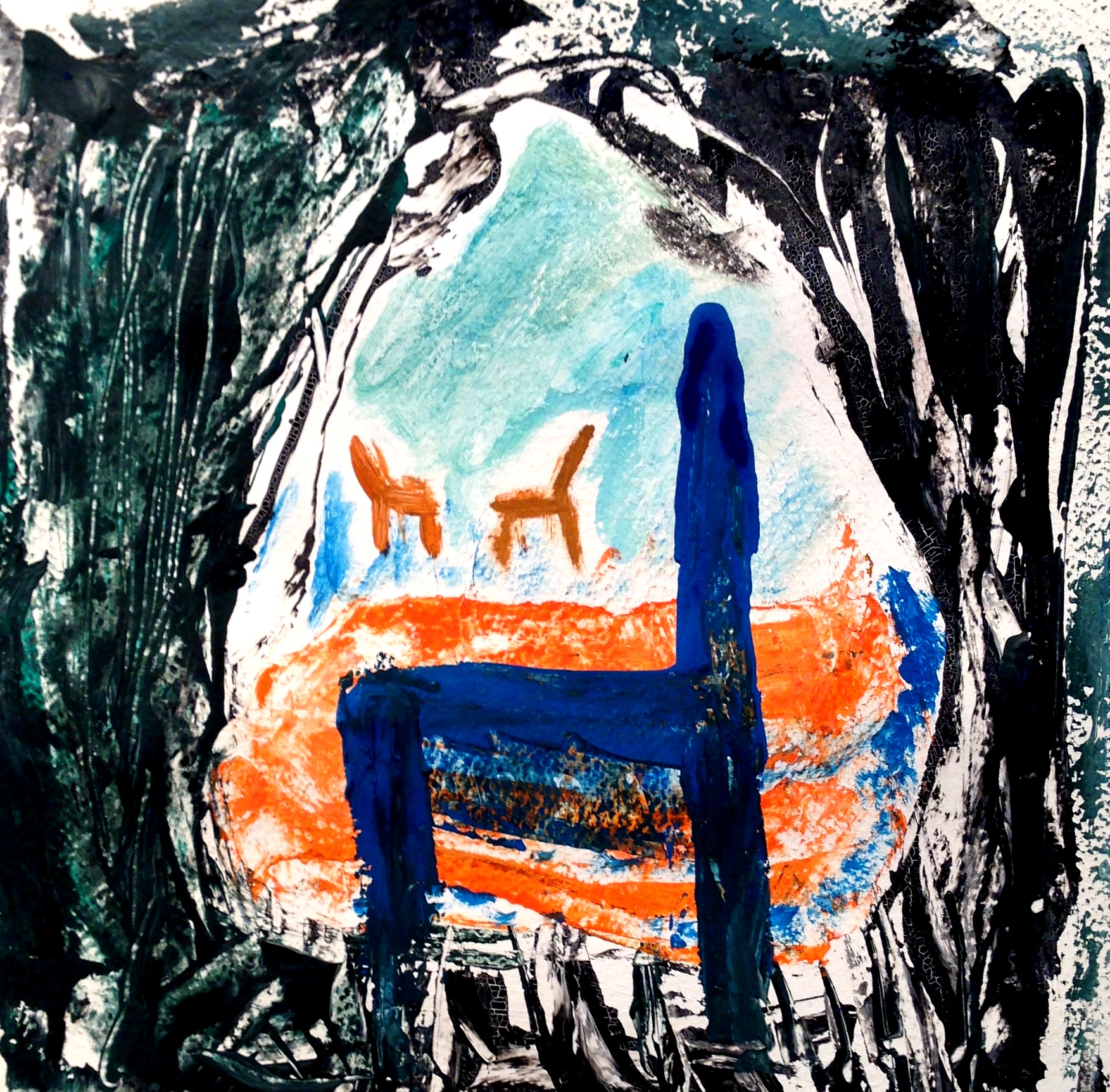Ce tableau (et la plupart de la série Itération ) a été réalisé à l’Atelier du geste. J’y travaille très rapidement, à partir d’un idée, d’une sensation ou d’un sentiment immédiats. Ici, c’est le besoin d’un espace de liberté pour ressentir, penser et agir.