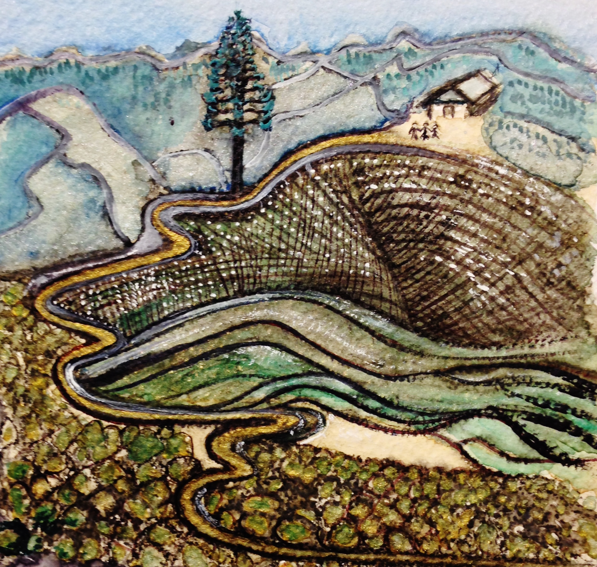 Voyage de rêve en Californie. Rupture avec le quotidien. Actvités «town and country». Quelques petites aquarelles dont High Sierra que je présente aujourd’hui.