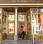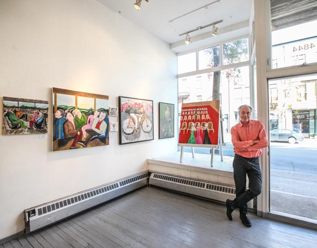 A few photographs, taken October 12, showing the facade of the gallery and the display of my paintings inside: