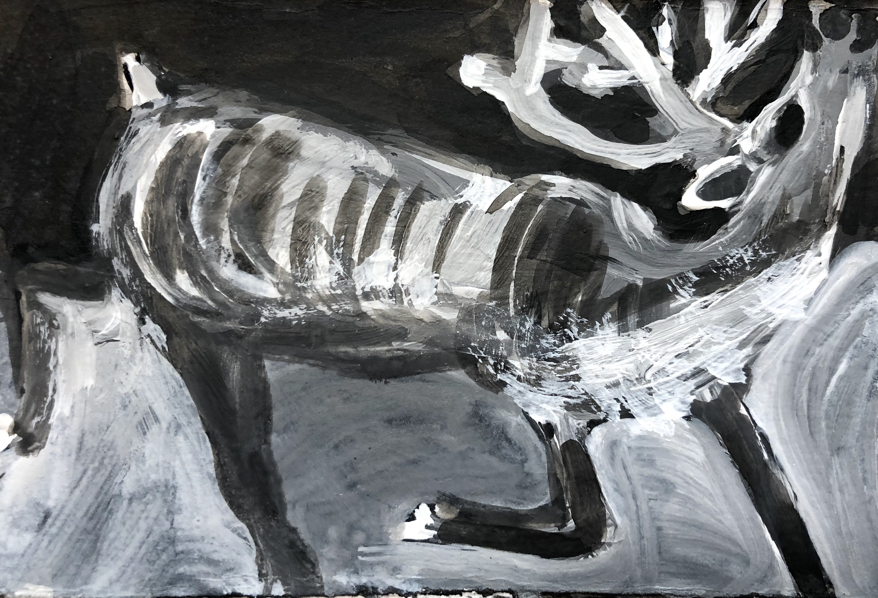 A. Clouâtre, 4 Caribous, Gesso et encre, 5 po. X 7 po., 2019: