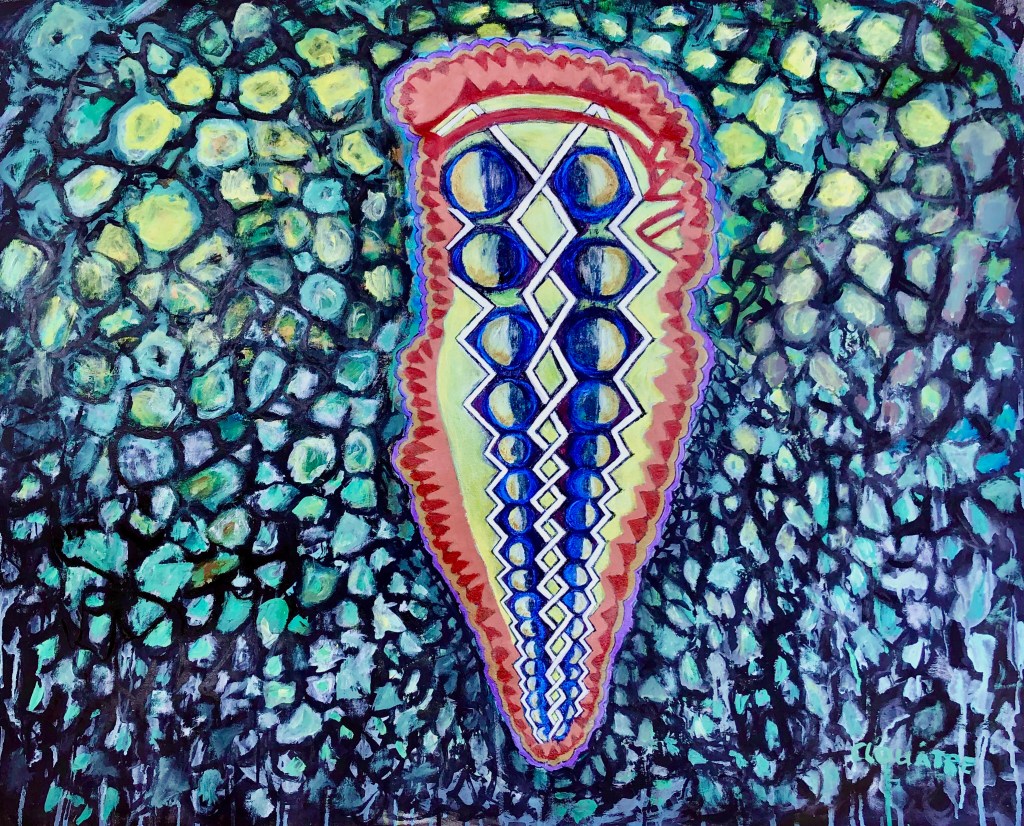 Image: André Clouâtre, Bouclier, Acrylique sur toile, 24 x 36 po., 2020
