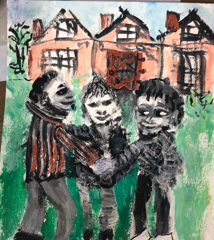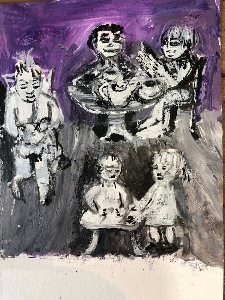 1. Quel beau projet, André,de t’inspirer comme ça d’une oeuvre littéraire pour dessiner et peindre. Je trouve qu’à travers ça tu t’améliores constamment dans le figuratif. J’aime plusieurs de tes esquisses mais mon coup de coeur va à ton grand tableau acrylique très réussi.