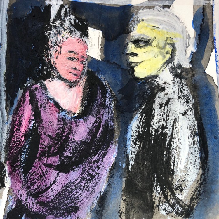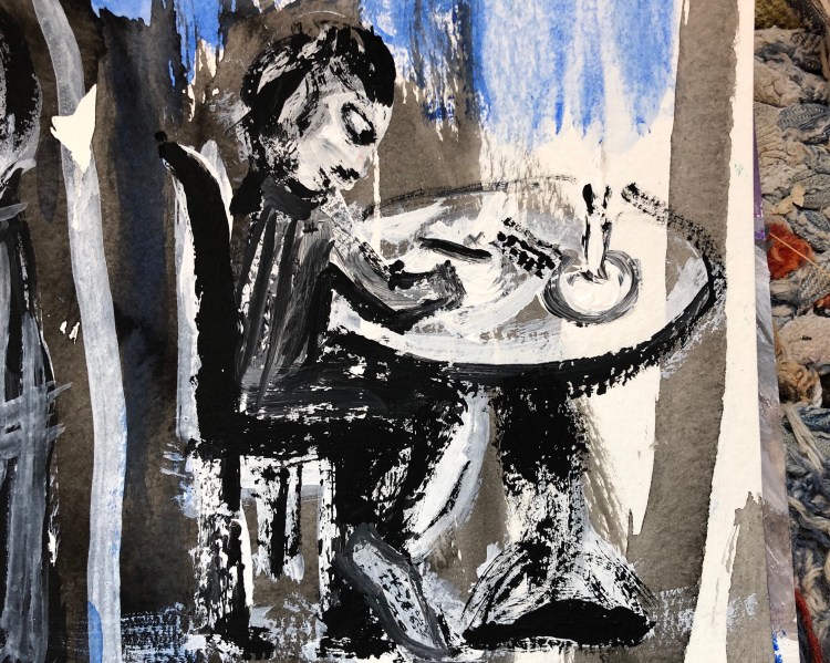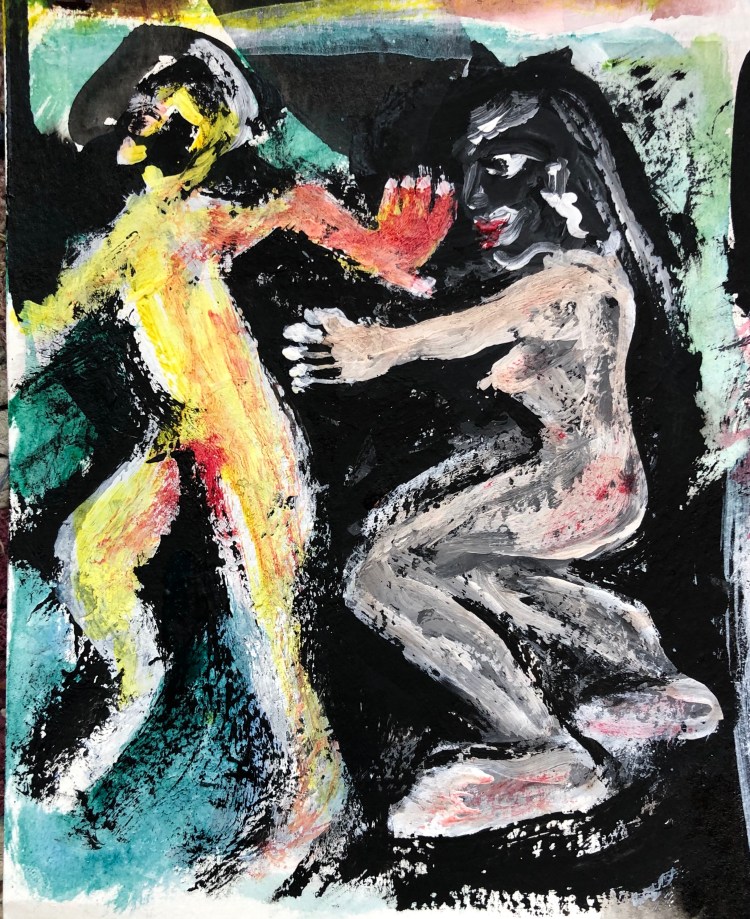 2. Merci Jean pour ton appréciation encourageante. Je suis content que tu remarques l’amélioration de mes dessins de personnage. Je cherche un équilibre entre les tableaux de facture longue et soignée et ceux faits avec des gestes spontanés et rapides.