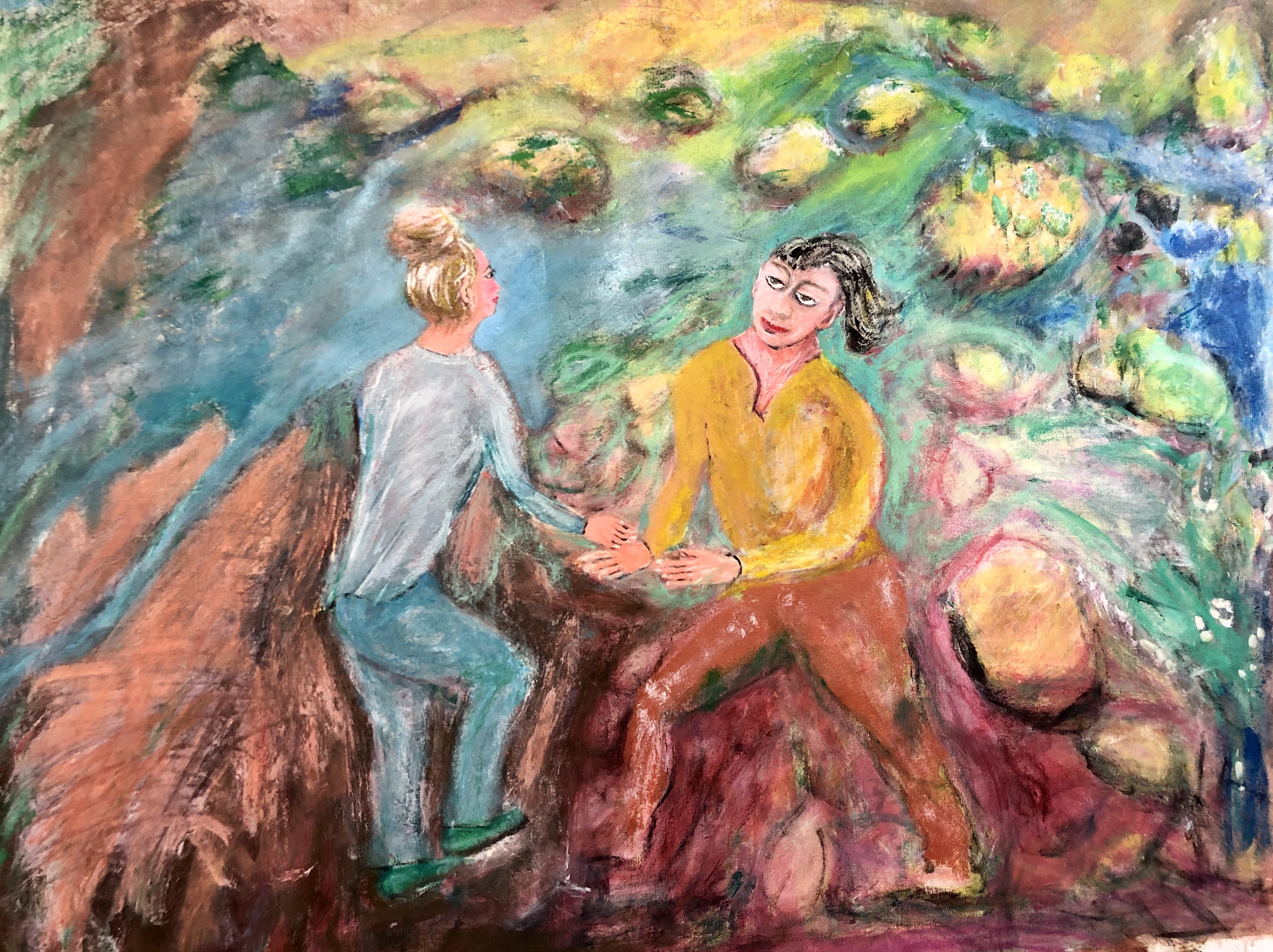 Cet article est la suite de celui publié le 1er octobre 2020. Je présente deux tableaux que j’ai peints en m’inspirant du roman Julie ou la Nouvelle Héloïse de Jean-Jacques Rousseau. J’ai réalisé le premier tableau, La confiance des belles âmes, dans un style rapide que j’affectionne, sans prétention de réalisme et de respect de proportions. Pour le deuxième, Monuments aux anciennes amours, je me suis appliqué dans le dessin réaliste de formes humaines, que je dessine de mémoire, de l’observation des corps que je vois en vrai.