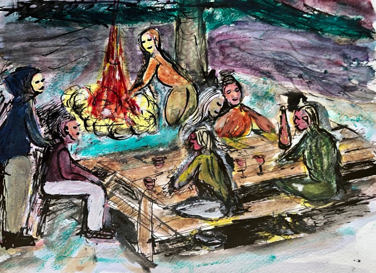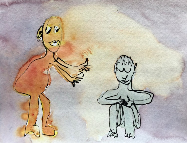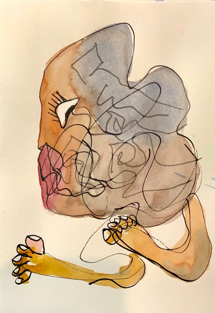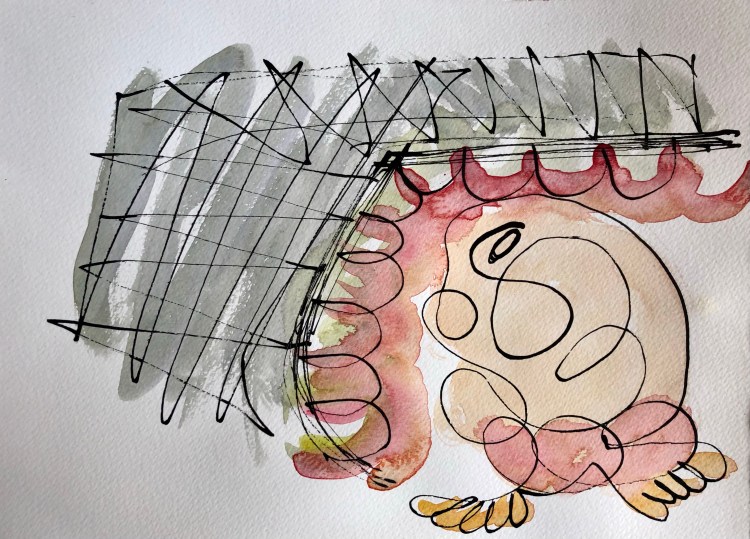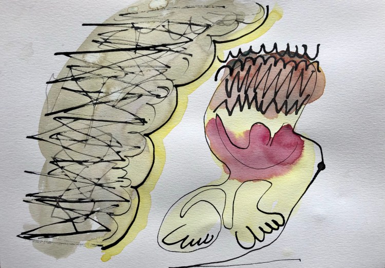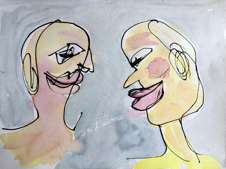 Au chalet, c’est le plaisir de dessiner à l’encre et à l’aquarelle. Détente, automatisme et agilité. Sans but, ou presque car je dois nourrir ma maigre bête internet ! Voici dix-sept de ces aquarelles. Comme sujets: les rapports aux autres, des pulsations et l’épanouissement.