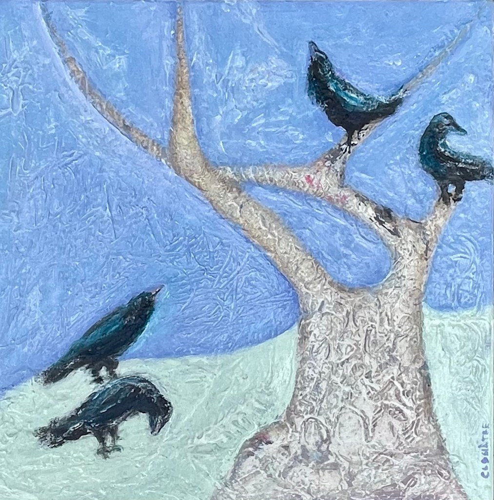 Today I’m finishing a series on birds. It all began with a dream I had last December. I had to feed some hungry birds. I am always on the quest for a truthful subject, a subject that I have intimate experience of, and so I made the theme of birds my own. Since then, I’ve done several drawings and paintings on this theme. They can be found in my articles from February, March and this month.
